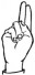 На ћирилици написано НИКОЛИНА ТЕОФИЛОВИЋ састоји се из 18 слова [?]. Исписано ћириличном једноручном азбуком за глувонеме: